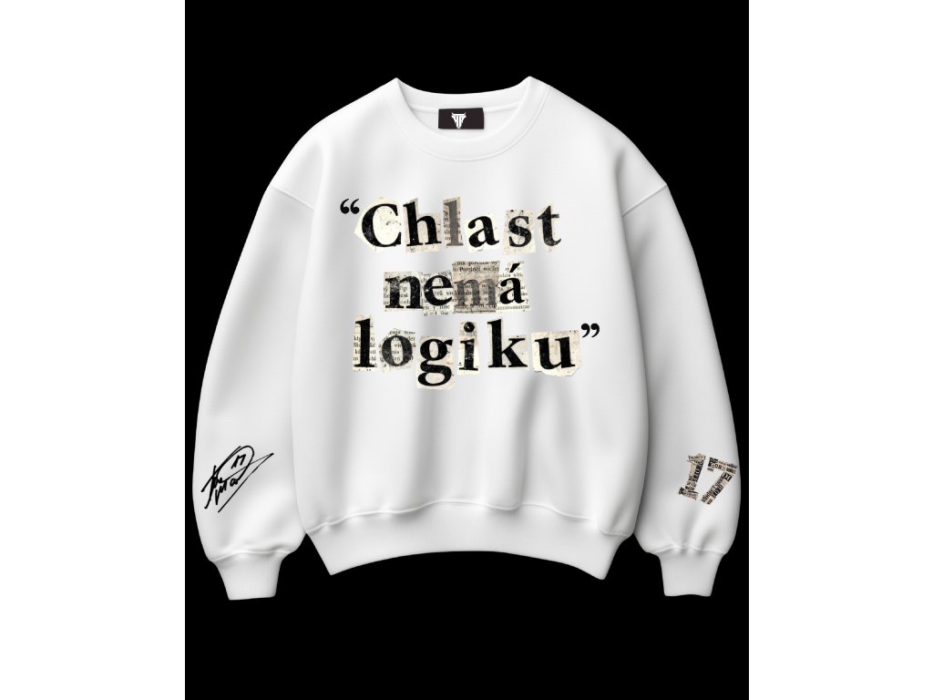 BÍLÁ OVERSIZE MIKINA MARTIN FENIN - CHLAST NEMÁ LOGIKU NEWS