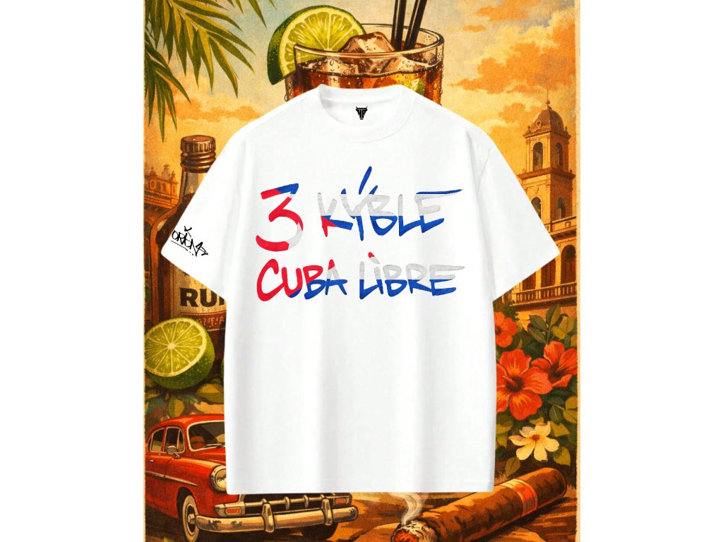 Bílé oversize bavlněné triko z redesign edice ORION|PSH, vzor 3 Kýble Cuba Libre